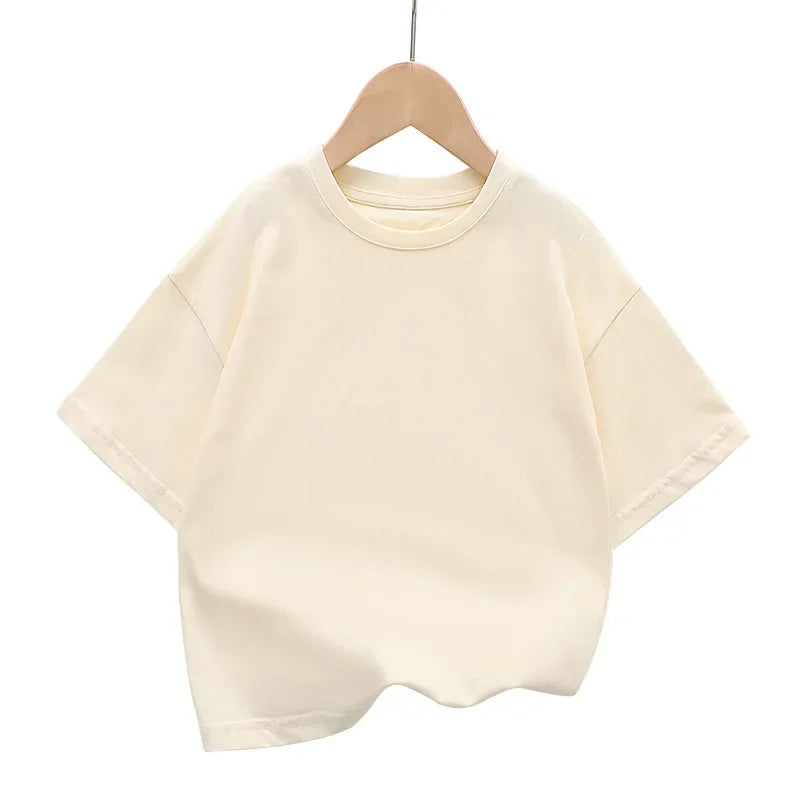 A soft and breathable cotton drop-shoulder tee made for everyday comfort. Trendy, lightweight, and perfect for kids aged 2–12 years.